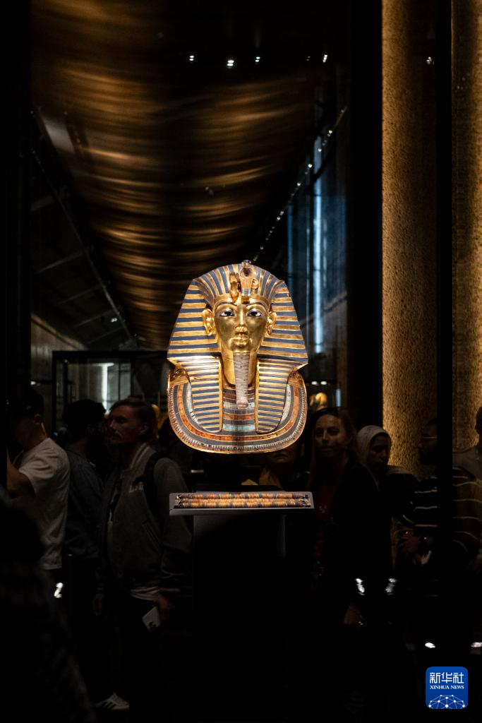 这是12月20日在埃及吉萨的大埃及博物馆拍摄的法老图坦卡蒙的黄金面具。