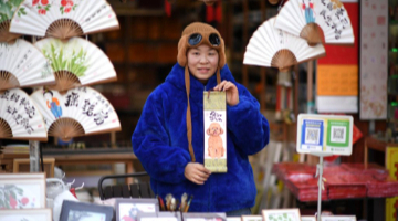 1月9日,画师陈丽华在书院门历史文化街区展示自己绘制的宠物狗画像。