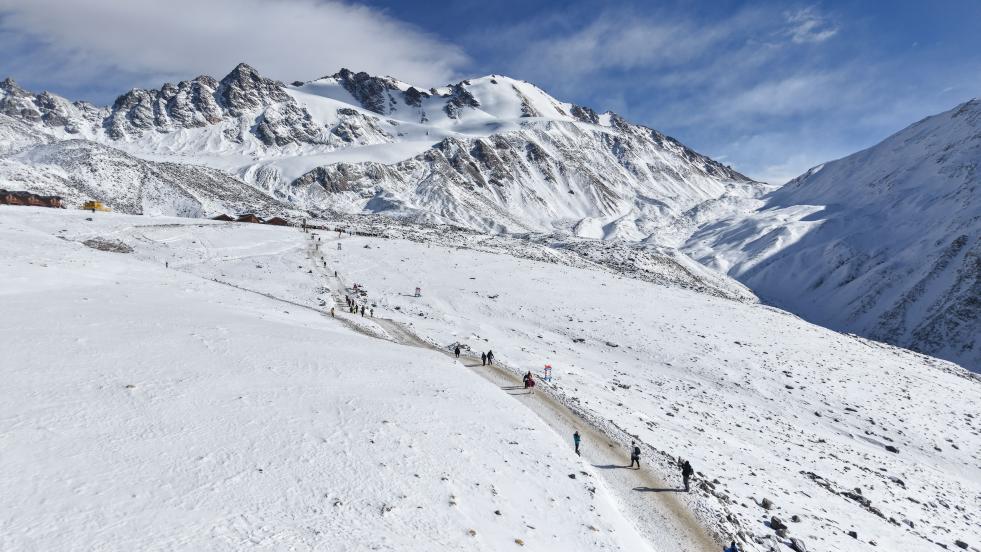 新华社西宁1月8日电(记者孙爱东、李琳海)小寒节气,天寒地冻。湛蓝天空下,岗什卡雪山巍然耸立。山谷气温已降到零下20摄氏度。然而,在岗什卡雪山游客服务中心,却是人潮涌动,呈现出热“雪”沸腾的景象。全国各地慕名而来的冰雪运动爱好者背着各种登山装备,正整装待发,准备打卡“人生第一座雪山”。