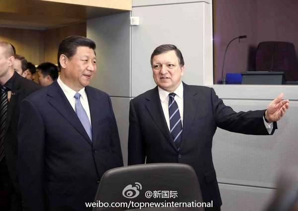 ????新華網(wǎng)北京3月31日電 據(jù)新華社“新國際”微博報(bào)道,中國國家主席習(xí)近平31日在會見歐盟委員會主席巴羅佐時(shí)說,要繼續(xù)發(fā)揮好貿(mào)易和投資在中歐合作中的主引擎作用。雙方應(yīng)該把互通有無的簡單買賣型貿(mào)易合作,提升為各領(lǐng)域聯(lián)動(dòng)的復(fù)合型經(jīng)貿(mào)合作,利用互補(bǔ)優(yōu)勢,力爭早日實(shí)現(xiàn)雙方年貿(mào)易額1萬億美元的目標(biāo)。