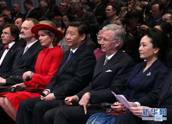 ????比利時王后瑪?shù)贍柕潞褪紫嗟蠀尾āW洲理事會主席范龍佩以及歐洲學(xué)院師生代表、比利時各界友好人士、各國駐比利時和歐盟使節(jié)等出席。