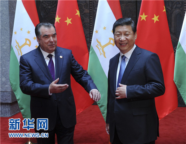 ????習近平表示,中方始終視塔吉克斯坦為好鄰居、好朋友、好伙伴,支持塔吉克斯坦維護國家穩定、促進經濟發展、提高人民生活水平。去年中塔建立戰略伙伴關系以來,兩國關系發展進入新階段,各領域合作勢頭很好。雙方要加緊制定《中塔2015-2020年戰略伙伴關系合作綱要》,如期推進中國-中亞天然氣管道工程以及塔方輸變電線路改造、交通和邊境口岸基礎設施建設、工業園、農業技術示范園區等合作項目,促進文化、教育、旅游合作,加強執法安全和防務合作,共同打擊“三股勢力”、販毒和跨國犯罪。中方全力支持和配合塔方辦好今年9月舉行的上海合作組織杜尚別峰會,推動本組織向團結更緊密、合作更務實、行動更有效的方向發展。
