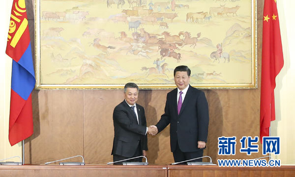 ????習近平表示,昨天,我同額勒貝格道爾吉總統談得很好,取得很多務實成果。我相信,只要雙方共同努力,中蒙務實合作就能夠邁開大步,給兩國人民帶來更多實實在在的利益。希望蒙古國國家大呼拉爾積極支持兩國合作,為兩國合作提供透明、穩定、良好的法律環境。