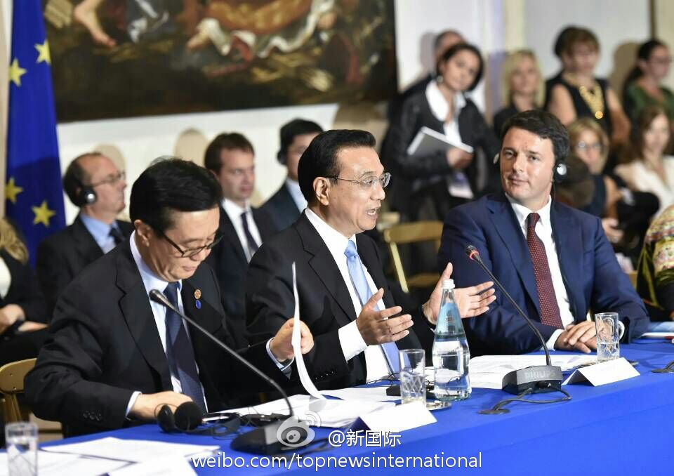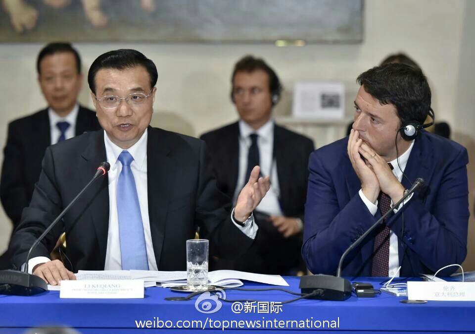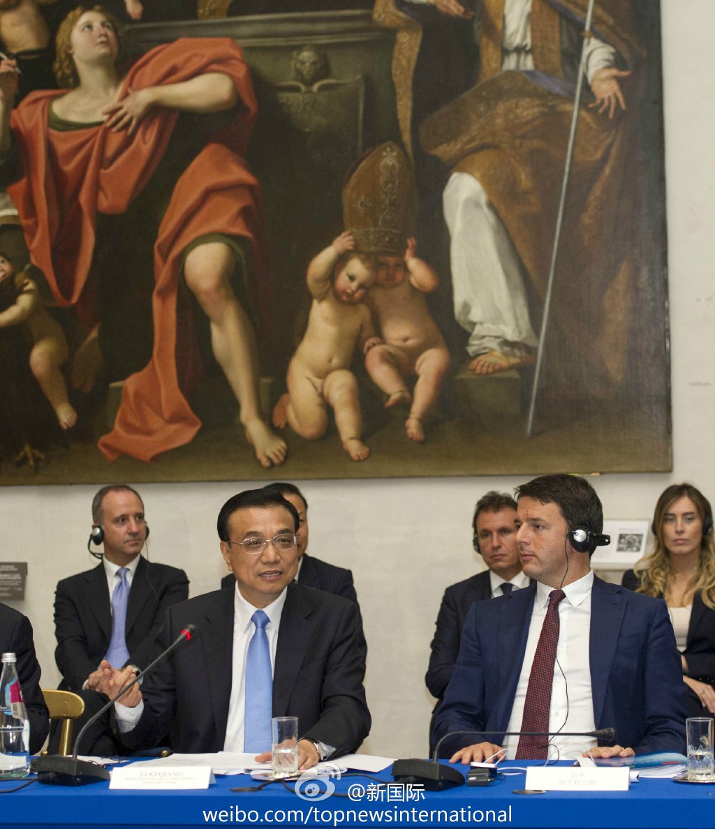 ????新華網北京10月15日電 據新華社“新國際”微博報道,中意兩國總理14日在羅馬共見兩國企業家代表,李克強說,企業界是推動兩國合作的主體和生力軍。當前中意都進入了依靠創新驅動的時代,這不僅需要科技創新,而且需要人文精神。希望兩國企業家爭做現代馬可·波羅,發揮互補優勢,推動企業間合作邁上創新的路程。