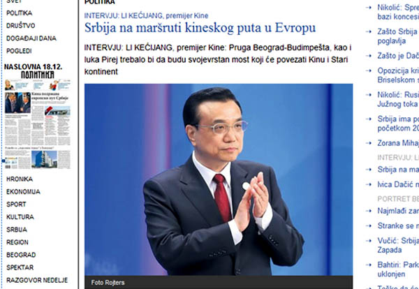 此外,塞爾維亞《政治報》網站刊文《中塞關系就像高速列車》,透露李克強和武契奇總理將共同為由中國專家建設的跨多瑙河大橋通車剪彩,并有望商談新的基建項目。塞爾維亞國家廣播電視臺RTS刊文《貝爾格萊德峰會,加強經濟關系》稱,近三十年時間里,中國總理將首訪塞爾維亞,中塞兩國總理將共同成為中國-中東歐國家領導人會晤的東道主。新的絲綢之路設想是為了加強中亞各國的聯系,而這條路也把中國帶到了巴爾干半島。