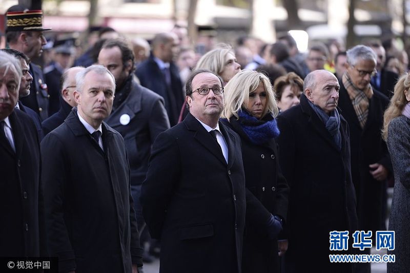 當地時間2017年11月13日,法國巴黎,法國恐襲2周年,法國舉行紀念儀式紀念遇難者。法國總統馬克龍偕夫人布麗吉特及前總統奧朗德等人出席紀念儀式。(圖片來源:視覺中國)
