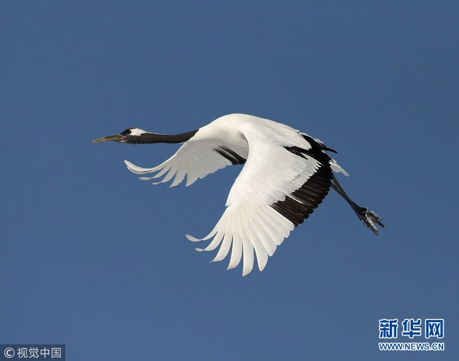12月25日訊(具體拍攝時間不詳),日本北海道,一對丹頂鶴在冰面上翩翩起舞,動作驚人一致。(圖片來源:視覺中國)