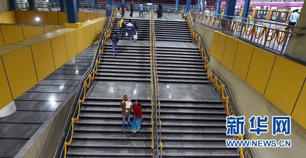 12月25日,在印度首都新德里洋紅色地鐵線,人們站在站臺臺階上駐足留影。當日,連接新德里及其衛星城諾伊達(Noida)之間的洋紅色地鐵線建成通車。這條線路全長12.64公里。德里地鐵公司計劃未來提高這條地鐵線路自動化水平,以“無人值守模式”運行。目前,新德里運營地鐵線路共有7條,分別用顏色命名,包括紅色、黃色、藍色、綠色、橙色、紫羅蘭和洋紅色。新華網發 (張迺杰 攝)