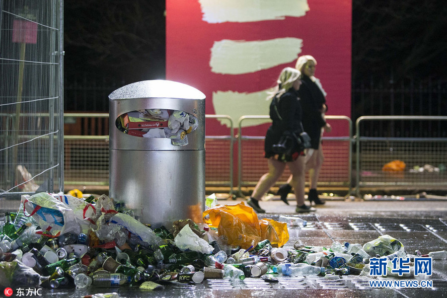 2018年1月1日,英國愛丁堡,跨年狂歡過后,遍地垃圾。(圖片來源:東方IC)