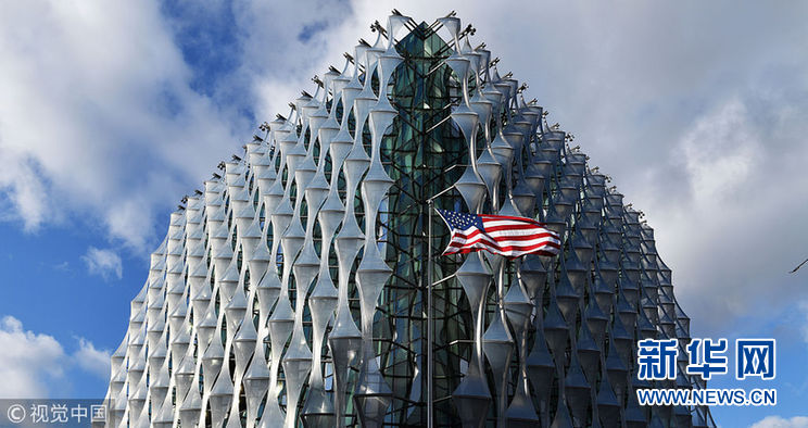 當地時間2018年1月16日,英國倫敦,位于倫敦的新美國駐英大使館16日開始正式對外開放。 (圖片來源:視覺中國)