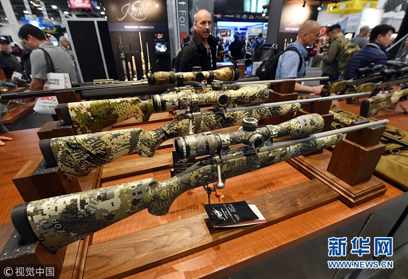 當?shù)貢r間2018年1月23日,美國拉斯維加斯,美國全國射擊運動基金會(NSSF)舉辦槍支展銷會。(圖片來源:視覺中國)