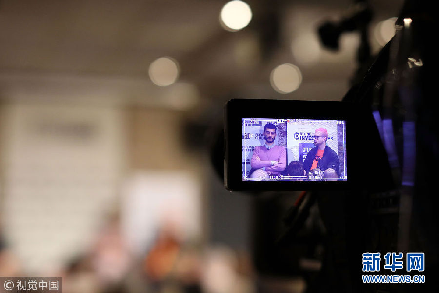 當地時間2018年3月26日,英國倫敦,被指泄露并利用了5000萬臉書用戶數據的政治數據公司“劍橋分析”近日被多位爆料人指出,該公司也參與了支持英國脫歐的活動。一位為英國脫歐組織“投給脫歐”工作過的爆料人Shahmir Sanni和“劍橋分析”前員工Christopher Wylie出席活動。(圖片來源:視覺中國)