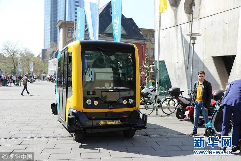 4月17日,德國法蘭克福,法蘭克福應用科學大學測試自動駕駛擺渡巴士。(圖片來源:視覺中國)