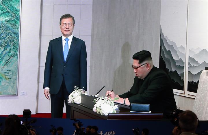 金正恩在板門店韓方一側的“和平之家”留言簿上題詞