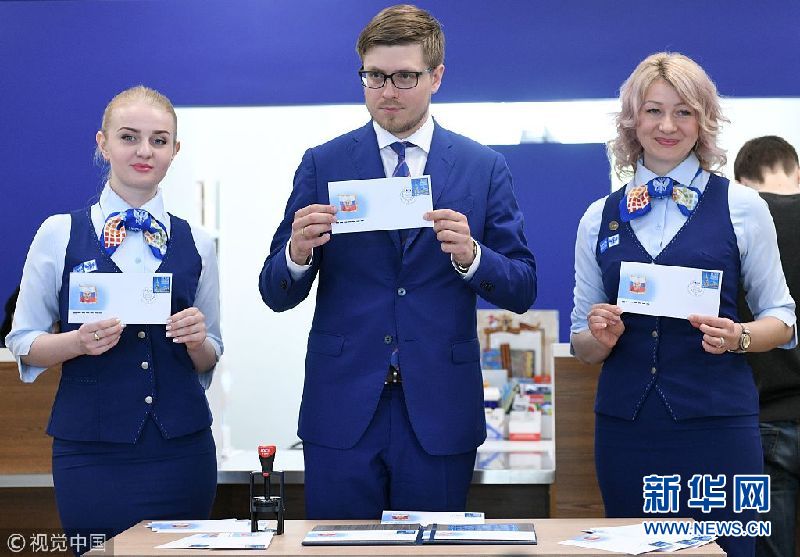 當地時間2018年5月7日,俄羅斯莫斯科,俄羅斯發行普京就職紀念郵票。(圖片來源:視覺中國)