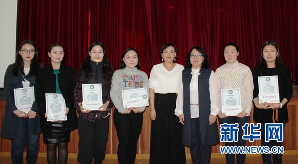 5月11日,蒙古國第六屆大中學(xué)生漢字硬筆書法比賽頒獎儀式現(xiàn)場。新華網(wǎng)發(fā) 意特格樂攝