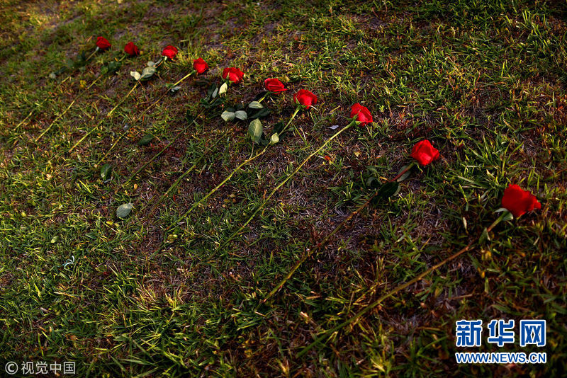 美國民眾獻花悼念圣菲高中槍擊案遇難者