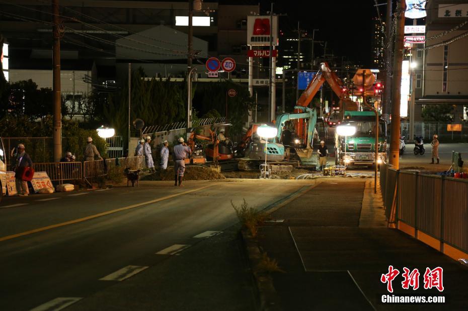 6月18日,日本大阪府發(fā)生6.1級(jí)地震。圖為位于震源附近的高槻市一處路面出現(xiàn)凹陷,相關(guān)部門(mén)正連夜進(jìn)行搶修。中新社記者 呂少威 攝