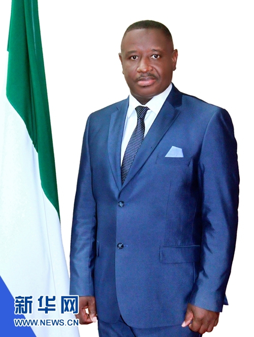 塞拉利昂共和國總統朱利葉斯·馬達·比奧像。 新華社發
