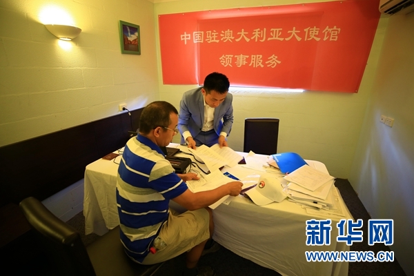 23日,中國(guó)駐澳大利亞使館的五名官員從首都堪培拉來(lái)到4000公里以外位于澳大利亞北部的港口城市達(dá)爾文,就領(lǐng)事保護(hù)和教育等方面的問(wèn)題同當(dāng)?shù)亓魧W(xué)生和華僑華人進(jìn)行交流并現(xiàn)場(chǎng)辦公。