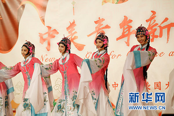 2月16日,在美國首都華盛頓,演員在中美青年新春聯(lián)歡活動(dòng)上表演。 新華社記者 劉杰 攝