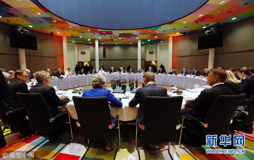 當地時間2019年4月10日,比利時布魯塞爾,歐盟領導人會議召開,討論英國“脫歐”議題。據路透社消息,歐盟各成員國達成一致,允許英國延期“脫歐”至10月底,6月份歐盟還將對此決定再次評估。歐洲理事會主席圖斯克表示,歐盟各成員國達成一致,允許英國延期“脫歐”,現在他將與英國首相特雷莎·梅舉行會談,確定英國是否接受這一提議。(圖片來源:視覺中國)