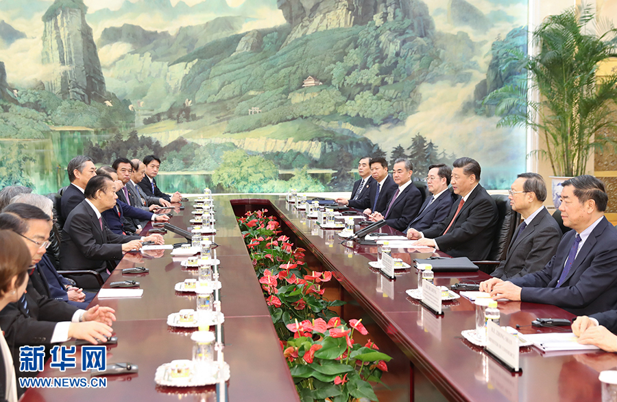 習近平指出,當前,中日關系重回正常軌道,呈現積極發展勢頭。雙方要恪守中日四個政治文件確立的各項原則,堅持和平友好大方向,持續深化互利合作,推動兩國關系健康穩定發展。要把中日“互不構成威脅”、“互為合作伙伴,相互支持對方和平發展”的政治共識落到實處,把兩國各領域交流合作推向新水平。雙方要深挖合作潛力。中方歡迎日方繼續深入參與中國改革開放,希望日方更加積極參與共建“一帶一路”。雙方要加強溝通和協調,共同維護多邊主義和自由貿易,共同推動建設開放型世界經濟。中方支持日方辦好二十國集團領導人大阪峰會。今年是中日青少年交流促進年,雙方要在兩國民間特別是青少年當中廣泛播撒友好種子,推進民心相通。