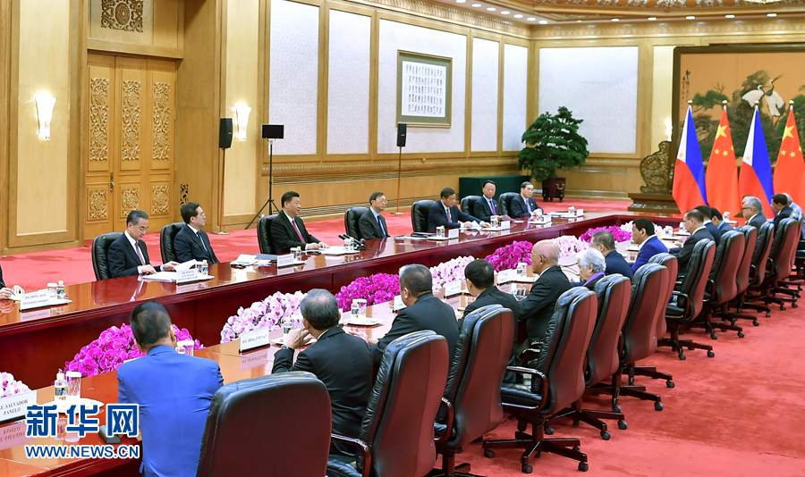 習近平指出,過去3年,中菲關系完成轉圜、鞏固、提升“三部曲”,步入新的發展階段。實踐證明,中菲堅持睦鄰友好順應歷史潮流,符合人民期待,是唯一正確選擇。我每次同你交談都推心置腹,坦誠相見,為的是我們兩國和兩國人民的福祉。我愿同總統先生一道,繼續從戰略高度和長遠角度把握好兩國關系正確航向。雙方要堅持睦鄰友好的大方向,共創攜手發展的大格局,發揮妥處分歧的大智慧,把握世界發展的大潮流。共建“一帶一路”倡議同總統先生提出的“大建特建”規劃高度契合,雙方合作卓有成效。中方愿同菲方深化發展戰略對接,在共建“一帶一路”框架內打造合作亮點,深化中菲兩國以及地區各國聯通和發展。雙方要重信守諾,發揚伙伴精神,保持南海和平穩定,加強海上合作。中方將繼續在禁毒、反恐等問題上全力支持菲律賓人民的正義事業。