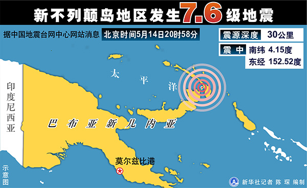 圖表:新不列顛島地區發生7.6級地震 新華社記者 陳琛 編制