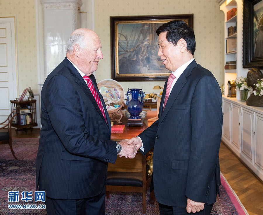 會見哈拉爾五世時,栗戰書首先轉達了習近平主席的親切問候,并對挪威國慶日致以熱烈祝賀。他說,去年國王陛下成功訪華,兩國元首為新時期中挪關系發展作出戰略規劃。今年是中挪建交65周年,希望雙方以此為契機,在相互尊重、平等相待的基礎上,鞏固友誼,擴大合作,推動兩國關系實現更好發展。哈拉爾五世表示,感謝習近平主席和中國人民對挪威的友好情誼,欽佩中國取得的巨大發展成就。挪威愿在冬季運動等領域加強對華合作,助力中國成功舉辦2022年冬奧會。