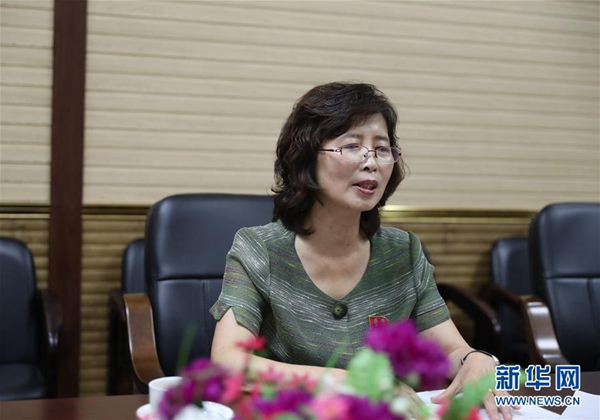 7月24日,朝鮮國家觀光總局觀光宣傳局局長金春姬在平壤接受新華社記者采訪。新華社記者 程大雨 攝