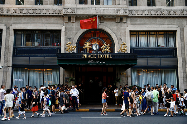 夜幕降臨,在燈光的輝映下,和平飯店更顯滄桑與榮耀。這座已有90年歷史的飯店曾經見證過許多中美兩國交往的重要場景,不僅老布什、克林頓、奧巴馬等多位美國前政要曾來過這里,1971年美國乒乓代表團訪問中國時,也曾住在這里。