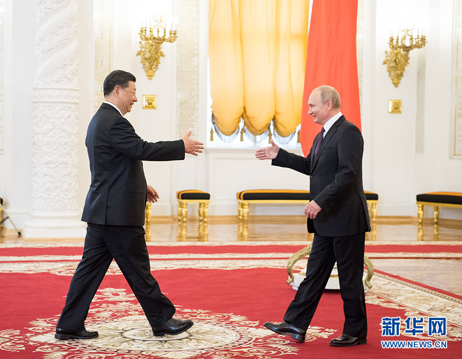 6月5日,克里姆林宮2層喬治大廳燈火通明。習(xí)近平主席和俄羅斯總統(tǒng)普京從數(shù)十米長(zhǎng)的紅毯兩端相向走來(lái)。