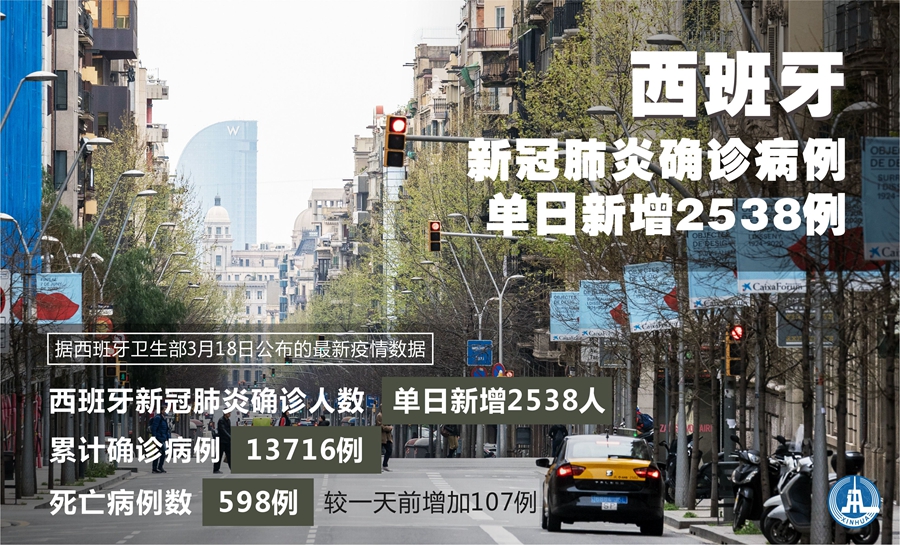 新華社馬德里3月18日電(謝宇智)據西班牙衛生部18日公布的最新疫情數據,西班牙新冠肺炎確診人數單日新增2538人,累計確診病例13716例。