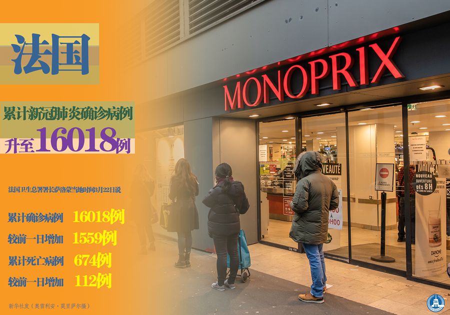 新華社巴黎3月22日電(記者陳晨)法國(guó)衛(wèi)生總署署長(zhǎng)薩洛蒙22日說(shuō),法國(guó)累計(jì)新冠肺炎確診病例16018例,較前一日增加1559例。