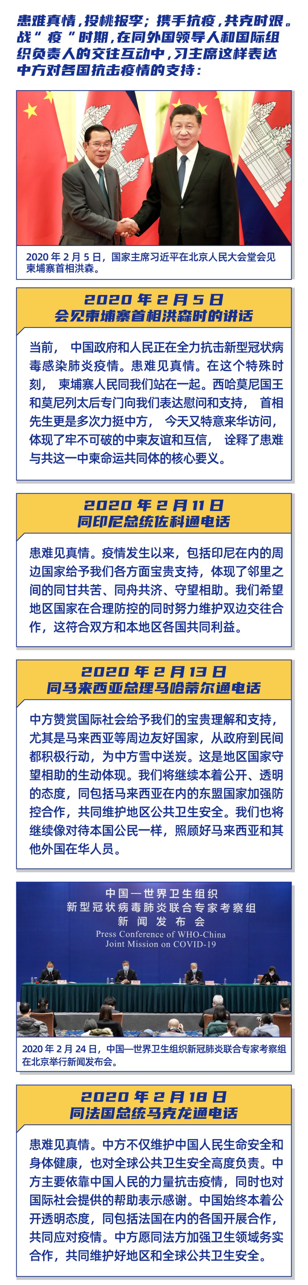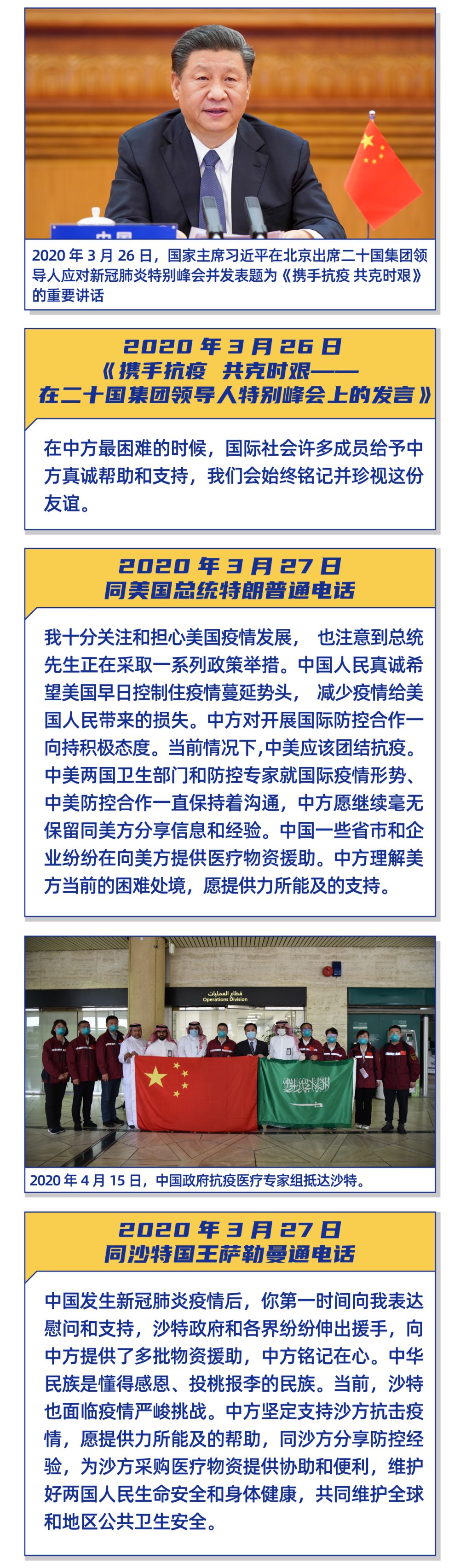 4月16日出版的第8期《求是》雜志發表中共中央總書記、國家主席、中央軍委主席習近平的重要文章《團結合作是國際社會戰勝疫情最有力武器》。文章第三專題著重強調:患難見真情,中方贊賞國際社會給予我們的寶貴理解和支持,中國人民銘記在心,中華民族是懂得感恩、投桃報李的民族,中方始終在力所能及范圍內為國際社會抗擊疫情提供支持。