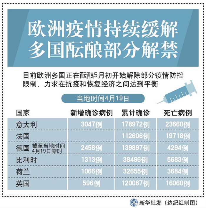 圖表:綜合消息:歐洲疫情持續緩解 多國醞釀部分解禁 新華社發 邊紀紅 制圖