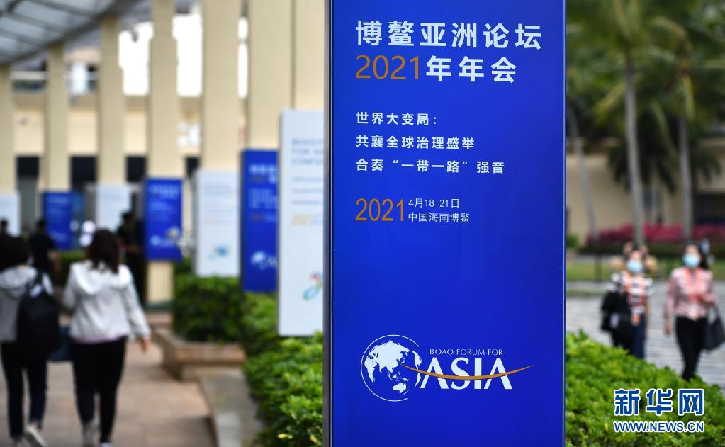 4月18日,參會人員走過博鰲亞洲論壇國際會議中心分會場通道。