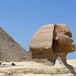4月26日,游客在位于埃及吉薩省的金字塔群景區內游玩。